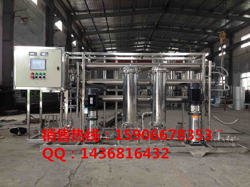 一级反渗透,图片上是单级反渗透,出水量为1吨每小时,采用多路阀预处理过滤器(砂滤、碳滤);使用4040膜-4支;全套反渗透纯水处理设备采用不锈钢材质,这样使得这套反渗透设备外形美观,不过这可不只是因为要把这套设备外观做好看,也是因为,反渗透设备出水是纯水,一般可以直接饮用,所以,使用卫生级不锈钢是尤为重要的。